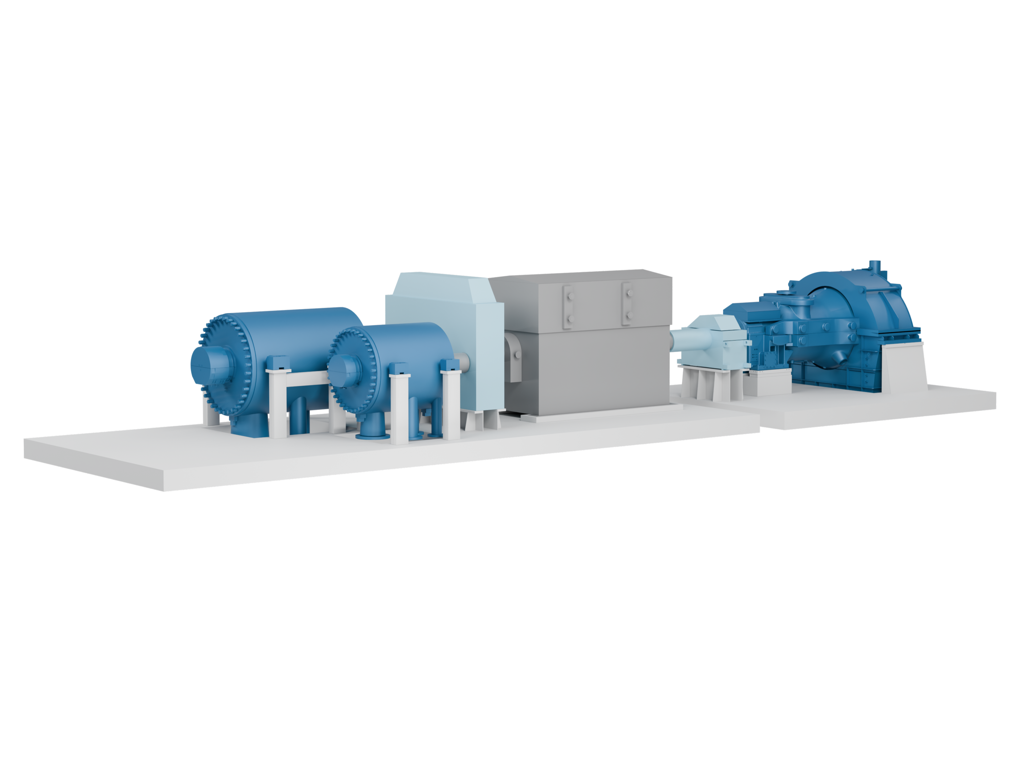 Our modular construction kits bring together proven turbomachinery components into integrated machinery trains tailored to specific industrial applications. The configurations shown represent selected examples and cover only part of the wide range of machinery train options available. Further concepts and customized configurations can be developed upon request.